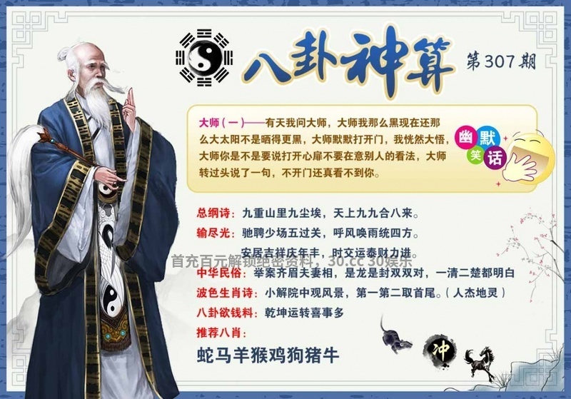 | 309期:八肖 | 虎马蛇狗鼠羊猪猴 | 發00中 |
